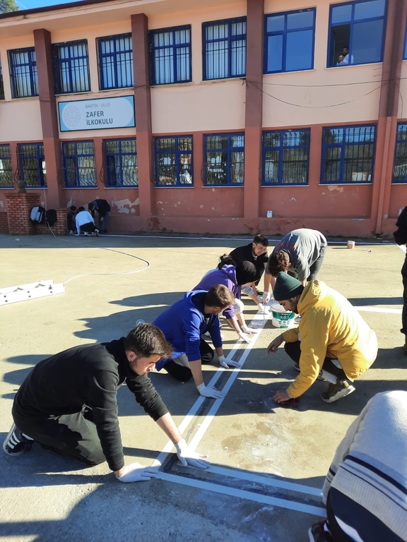 Within the scope of the Community Service Practices Course given in the 2nd grade at Bartın University, Faculty of Sports Sciences, Physical Education and Sports Department, at Zafer Primary School in Kumluca Town Zafer Village, on 20.12.2023, determining the appropriate sports for the activity, sports and social intermittent visuals were drawn and painted in the classrooms, sports section field lines and section details were made, and the gifts provided by the departments were presented for the village school education by serving food grown by the barbecue. The activities in the place in question were carried out with transportation, breakfast and lunch were provided, and necessary communications were established in order to prevent safety and possible health problems. Our activity was carried out with the contributions of Ercan Karataş, the Principal of Zafer Primary School in Kumluca, Orhan TOFAN, the owner of Elif Tekstil, and Kumluca Municipality. Course instructor Dr.Murat SARIKABAK said, "We would like to thank the Department of Construction Affairs and the Department of Health, Culture and Sports for their support during the practices carried out within the scope of this activity, and the management of the Department of Physical Education and Sports and the Faculty of Sports Sciences for their participation in the classes."