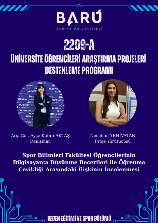Students from the Faculty of Sport Sciences at Bartın University have achieved significant success within the scope of the TÜBİTAK 2209-A – Research Project Support Program for Undergraduate Students. A total of five different projects prepared under the supervision of our department members have been awarded support.